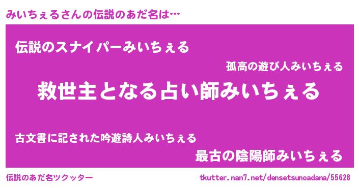 | 女子向けラノベタイトル風あだ名 | 『みいちぇるストレイドッグス』 |