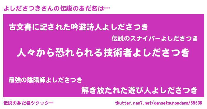 | 肩書あだ名 | 『よしださつき船長』『よしださつき大佐』 |