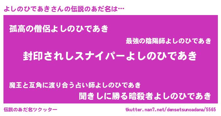 | 意味不明あだ名 | 『住所不定無職よしのひであき(77歳)』 |