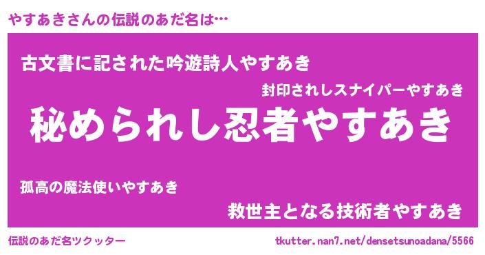| 男性向けラノベタイトル風あだ名 | 『やはりやすあきの青春ラブコメはまちがっている 』 |
