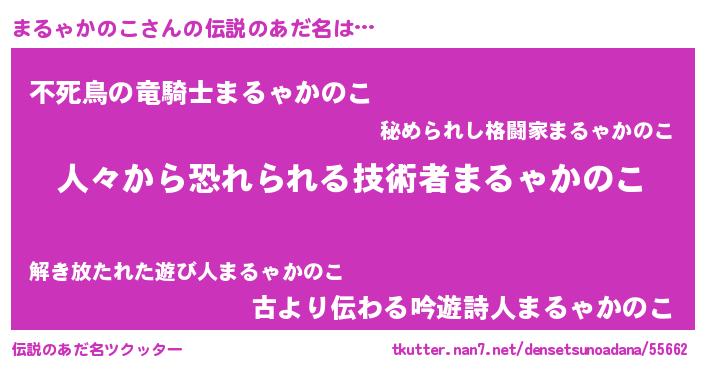 | ヘコむあだ名 | 『まるにー』『まるゃかのこ(小並感)』 |