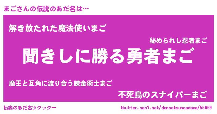| ヘコむあだ名 | 『まご(遠い目)』『まごを』 |