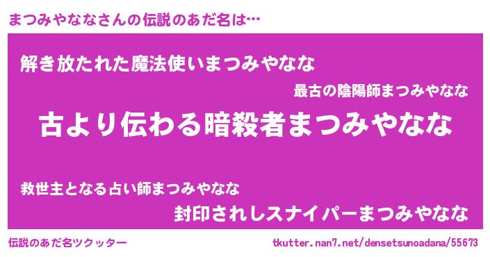 | 意味不明あだ名 | 『自称まつみやなな』 |