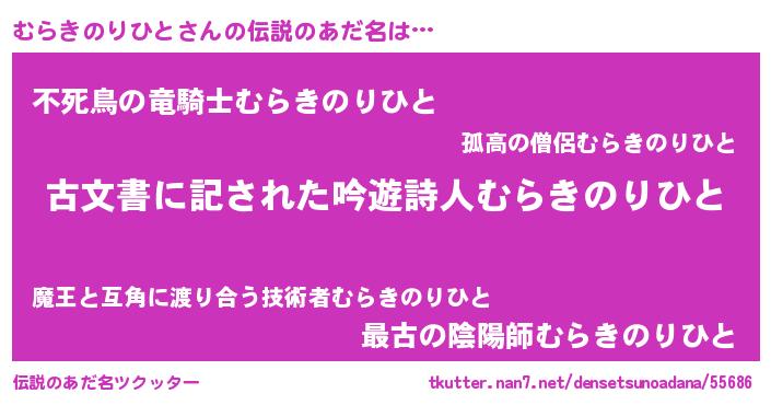 | 男性向けラノベタイトル風あだ名 | 『むらきのりひと~年齢イコール彼女いない歴の魔法使い~』 |