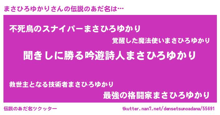 | ヘコむあだ名 | 『まさひろゆかり(小並感)』『まさっふぃ~』 |