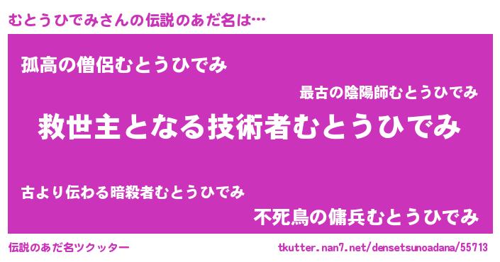 | 意味不明あだ名 | 『自称むとうひでみ』 |