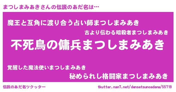 | 胡散臭い通販商品みたいなあだ名 | 『モテモテ間違いなし水晶球…その名も「まつしまみあき」』 |