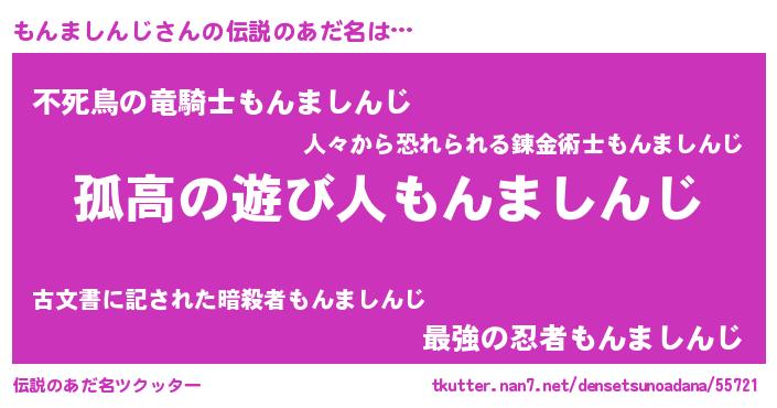 | 女子向けラノベタイトル風あだ名 | 『もんましんじアンティーク』 |