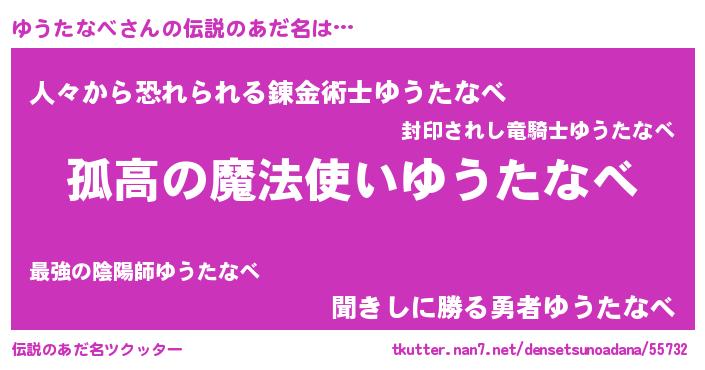 | ヒーロー風カッコイイあだ名 | 『暗黒騎士ユウ』『正義の使者ゆうたなべ』 |