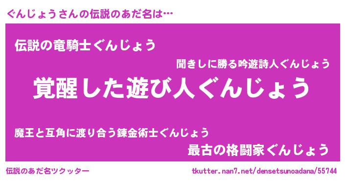 | 胡散臭い通販商品みたいなあだ名 | 『あなたにだけ特別に提供する世界で10本だけ現存している希少なブランデー…その名も「ぐんじょう」』 |