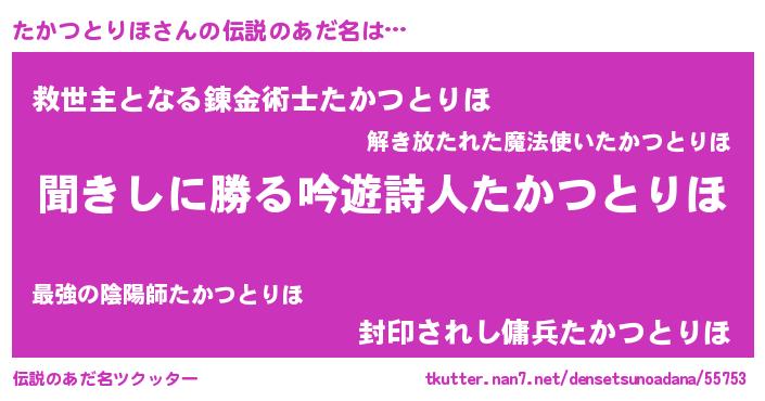 | 男性向けラノベタイトル風あだ名 | 『たかつとりほという概念が存在しない退屈な世界 』 |