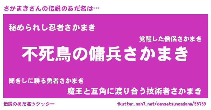 | ヒーロー風カッコイイあだ名 | 『スーパーサカマキ』『黄金騎士サカ』 |