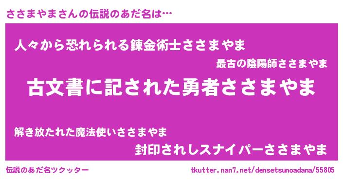 | 意味不明あだ名 | 『永久保存ささまやま』 |