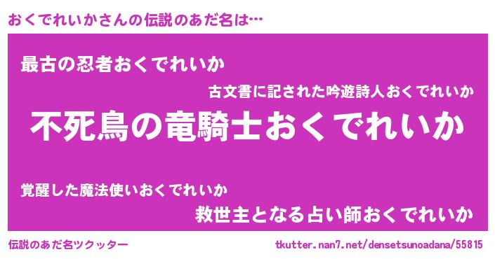| 女子向けラノベタイトル風あだ名 | 『おくでれいか姫と円卓の騎士』 |