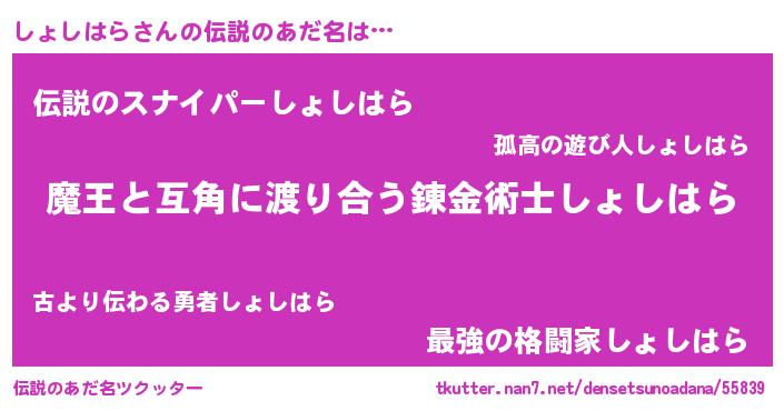 | ヒーロー風カッコイイあだ名 | 『愛の使者しょしはら』『仮面ショダー』 |