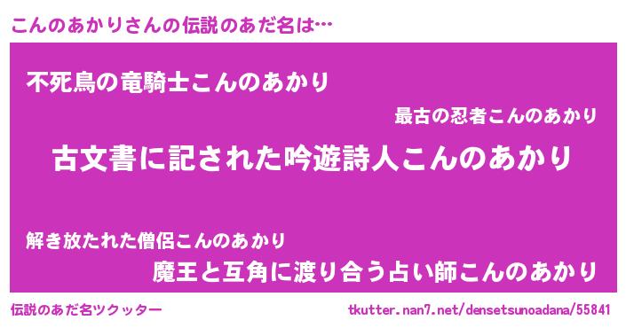 | ヒーロー風カッコイイあだ名 | 『ネオコンノアカリ』『仮面コンダー』 |