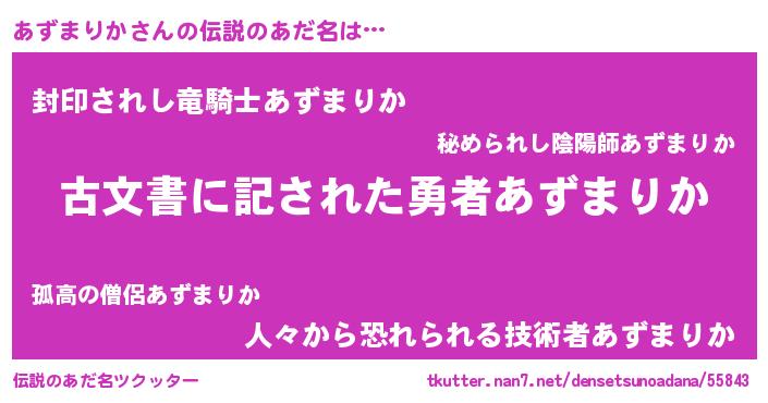 | 意味不明あだ名 | 『永久保存あずまりか』『自称あずまりか』 |