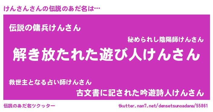 | ヒーロー風カッコイイあだ名 | 『魔戒騎士ケン』『スーパーケンサン』 |
