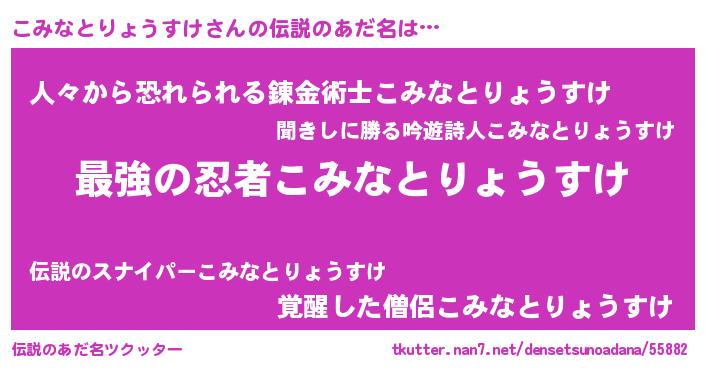| 欧米人風あだ名 | 『こみなとりょうすけクリステル』 |