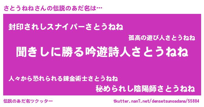 | ヒーロー風カッコイイあだ名 | 『仮面サトダー』『ネオサトウネネ』 |