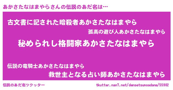 | 男性向けラノベタイトル風あだ名 | 『やはりあかさたなはまやらの青春ラブコメはまちがっている 』 |
