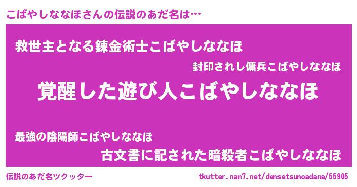 | ヒーロー風カッコイイあだ名 | 『幻影騎士コバ』『ネオコバヤシナナホ』 |
