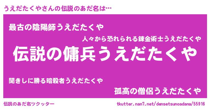 | 欧米人風あだ名 | 『ダレノガレうえだたくや』 |