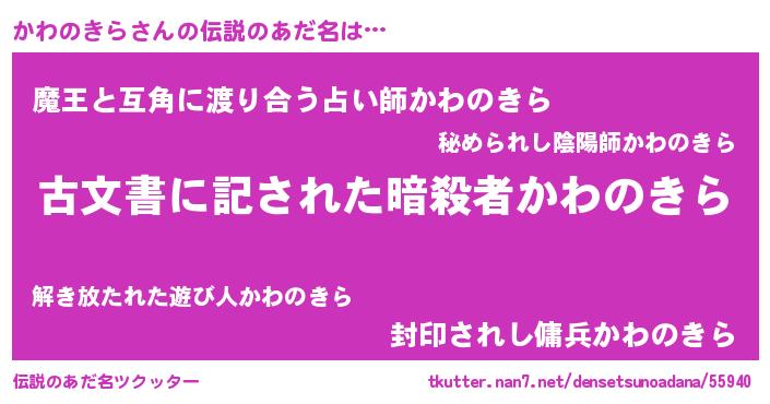 | 胡散臭い通販商品みたいなあだ名 | 『前代未聞の健康食品…その名も「かわのきら」』 |