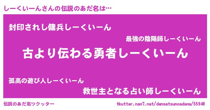 | 意味不明あだ名 | 『自称しーくいーん』 |