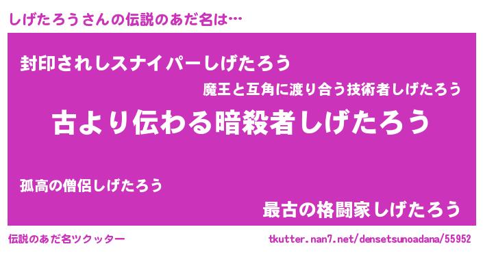 | 意味不明あだ名 | 『自称しげたろう』『永久保存しげたろう』 |