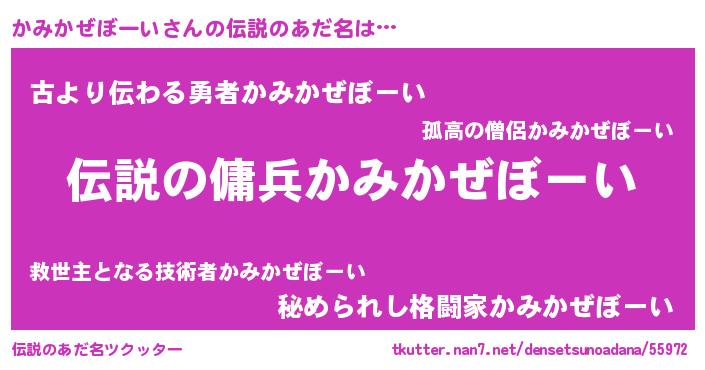 | 女子向けラノベタイトル風あだ名 | 『かみかぜぼーいなんてお断りですっ。』 |