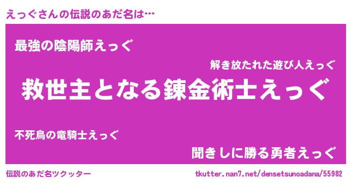 | ヒーロー風カッコイイあだ名 | 『慈愛の使者えっぐ』『ネオエッグ』 |