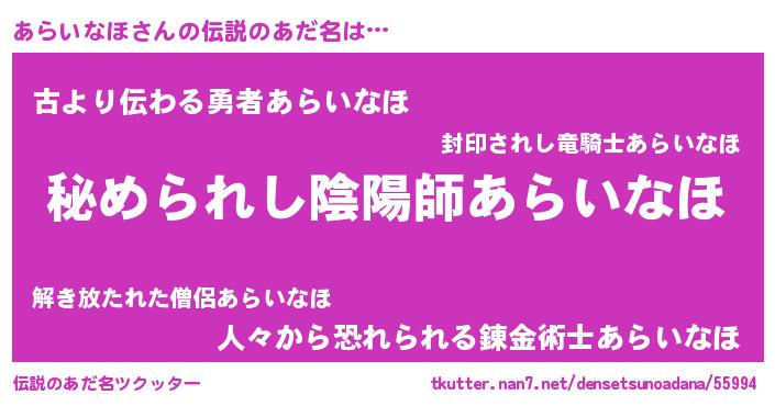 | ヒーロー風カッコイイあだ名 | 『ウルトラあらいなほマン』 |