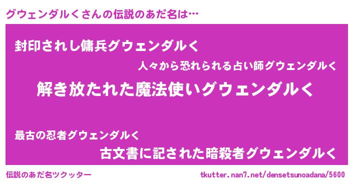 | 料理風あだ名 | 『グウェンダルくごはん』 |