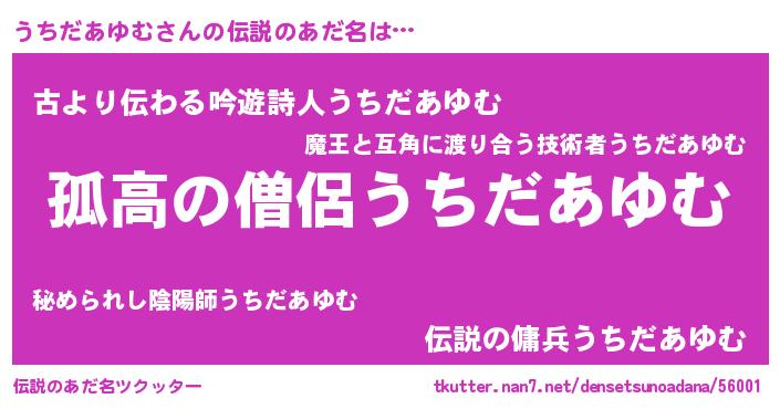 | 意味不明あだ名 | 『自称うちだあゆむ』 |