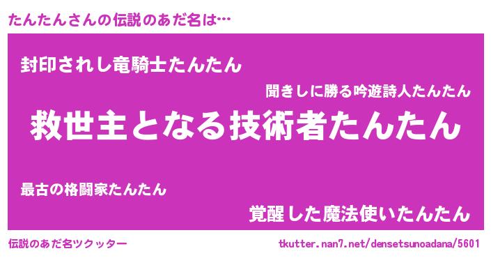 | 女子向けラノベタイトル風あだ名 | 『死神たんたんの再婚』『闇のたんたん』 |