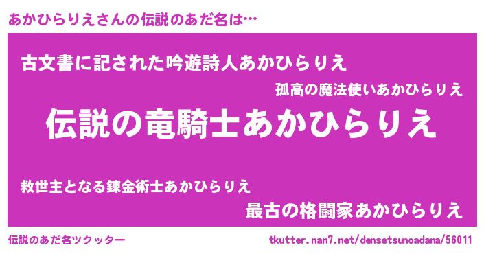 | 意味不明あだ名 | 『住所不定無職あかひらりえ(11歳)』 |