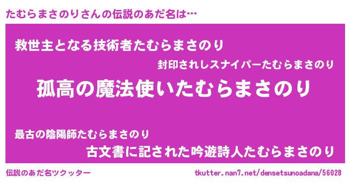 | 女子向けラノベタイトル風あだ名 | 『たむらまさのりは平凡を望む』 |