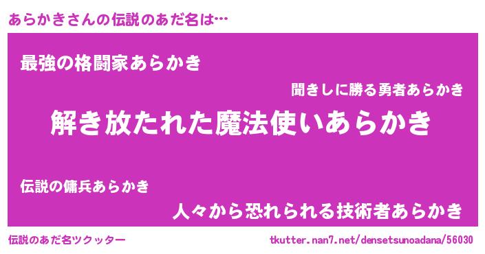 | ヒーロー風カッコイイあだ名 | 『銀牙騎士アラ』『ウルトラあらかきマン』 |