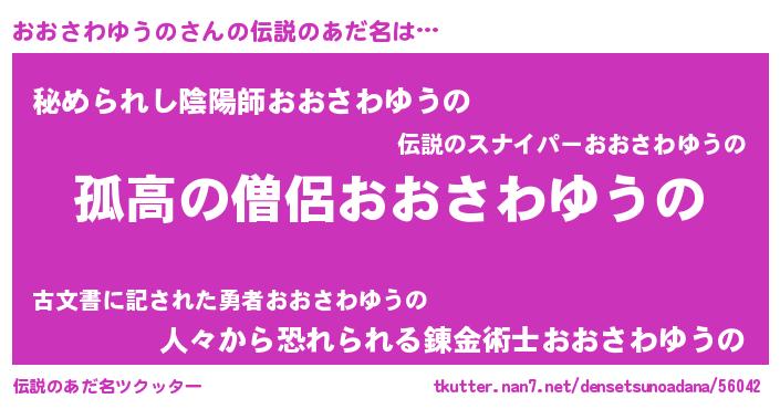 | 意味不明あだ名 | 『とにかく怪しいおおさわゆうの』 |