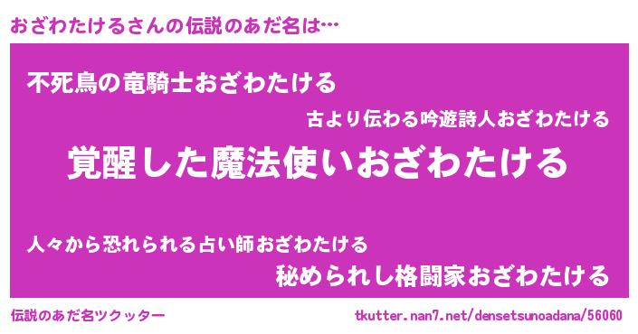 | 女子向けラノベタイトル風あだ名 | 『おざわたける様がみてる』 |
