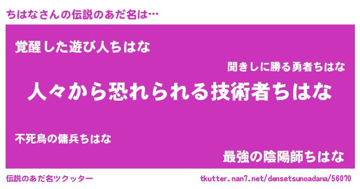 | 意味不明あだ名 | 『眠気覚ましガムちはな味』『自称ちはな』 |