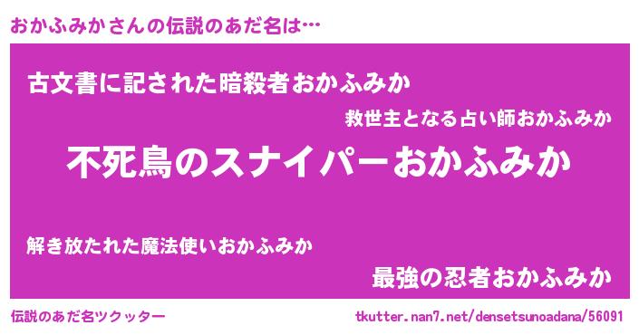| 意味不明あだ名 | 『住所不定無職おかふみか(84歳)』 |