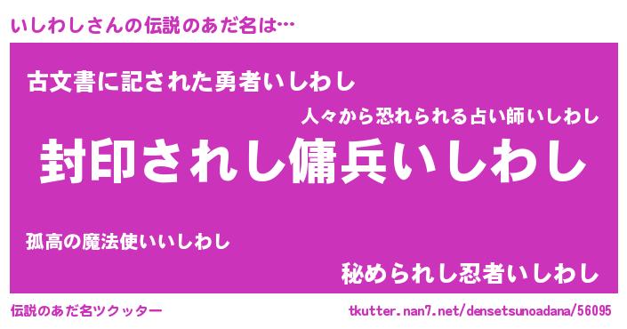 | ヒーロー風カッコイイあだ名 | 『スーパーイシワシ』『ネオイシワシ』 |