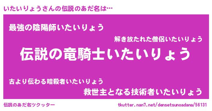 | 男性向けラノベタイトル風あだ名 | 『いたいりょうの憂鬱』 |