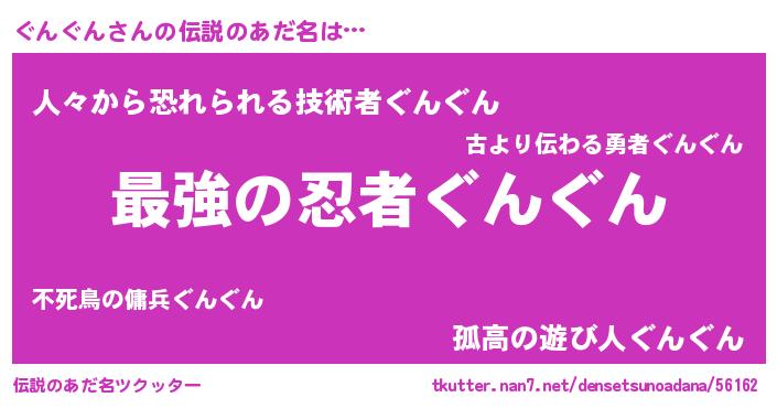 | ヒーロー風カッコイイあだ名 | 『究極戦士グングン』『幻影騎士グン』 |