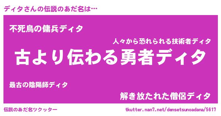 | ヒーロー風カッコイイあだ名 | 『ネオディタ』『サイバー戦士ディタ』 |