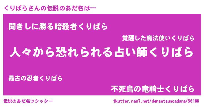 | ヒーロー風カッコイイあだ名 | 『正義の使者くりばら』『ネオクリバラ』 |
