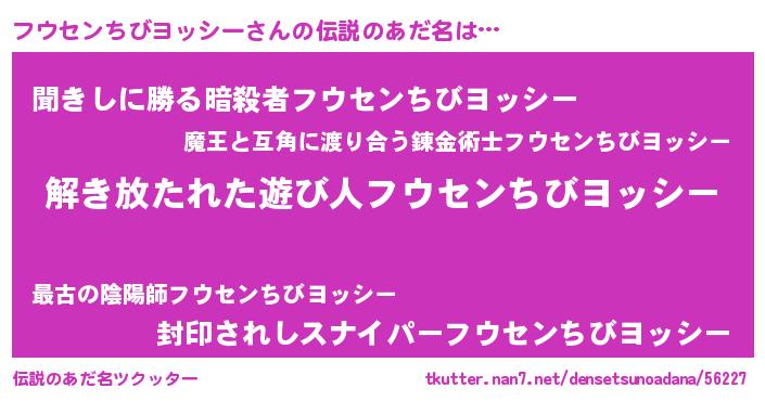 | 女子向けラノベタイトル風あだ名 | 『フウセンちびヨッシーの玉の輿計画!』 |