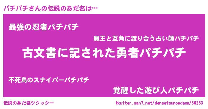 | 意味不明あだ名 | 『永久保存パチパチ』 |